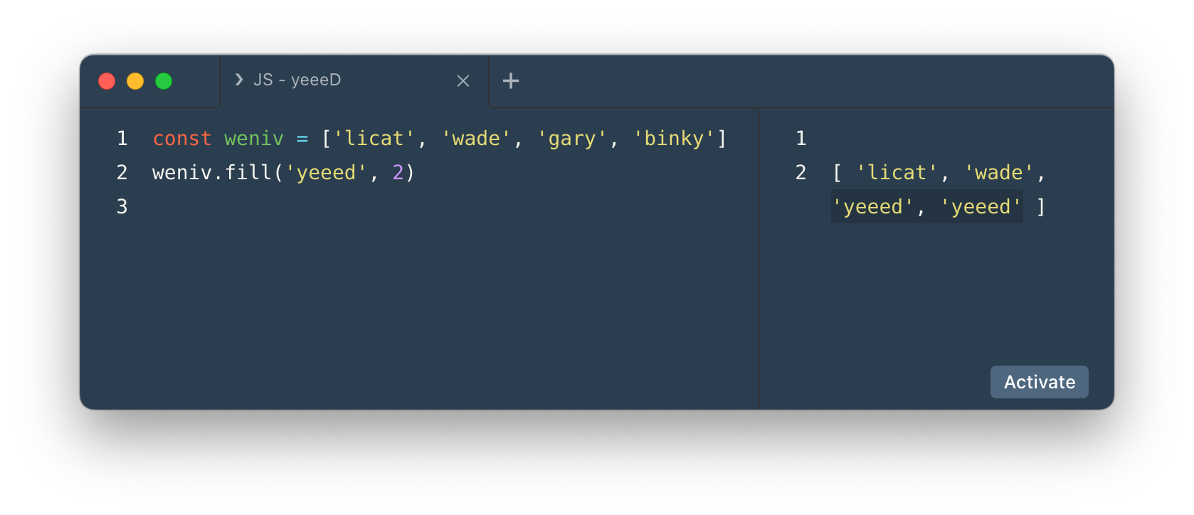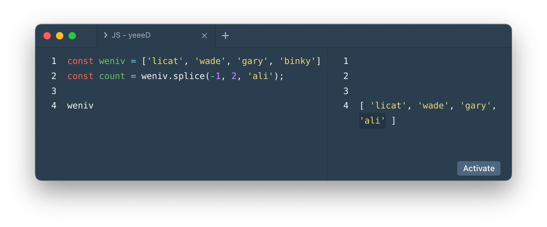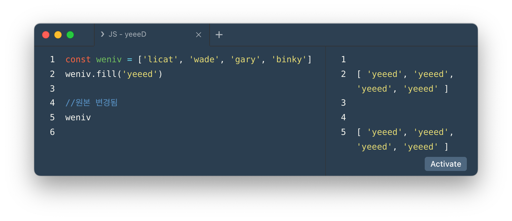 - 위 같은 경우는 yeeed라는 요소를 [2] 번째부터 [-1]번까지 이므로 [2] 번째 요소가 바뀐 것을 확인할 수 있다