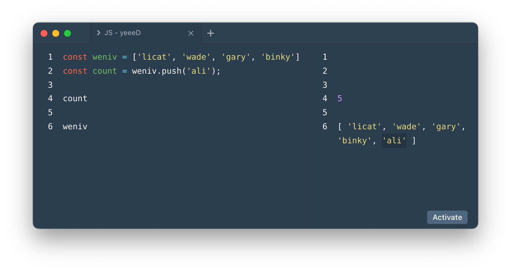 - 다시 배열을 찍어보면 추가된 요소를 확인할 수 있다 (원본 배열이 수정됨)