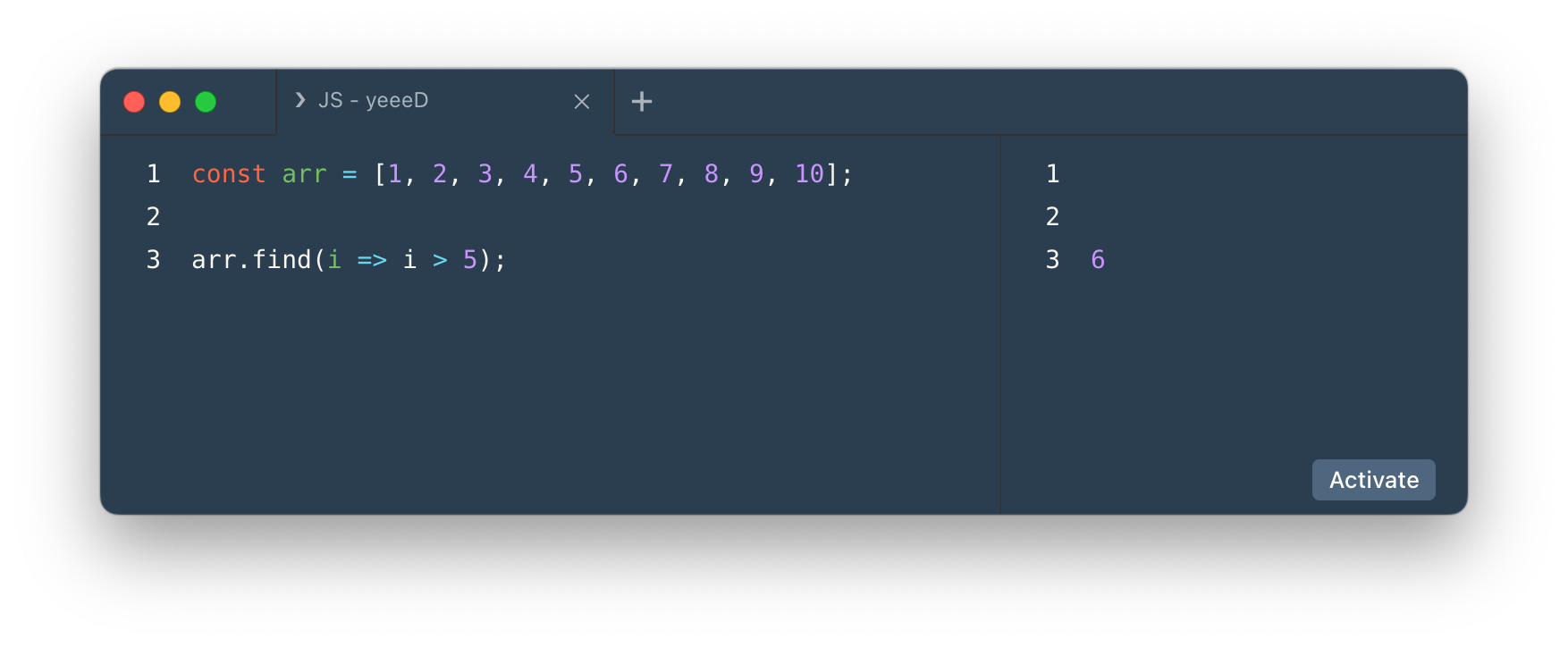 - 배열에서 특정 조건에 맞는 요소를 단 1개만 찾아 반환한다