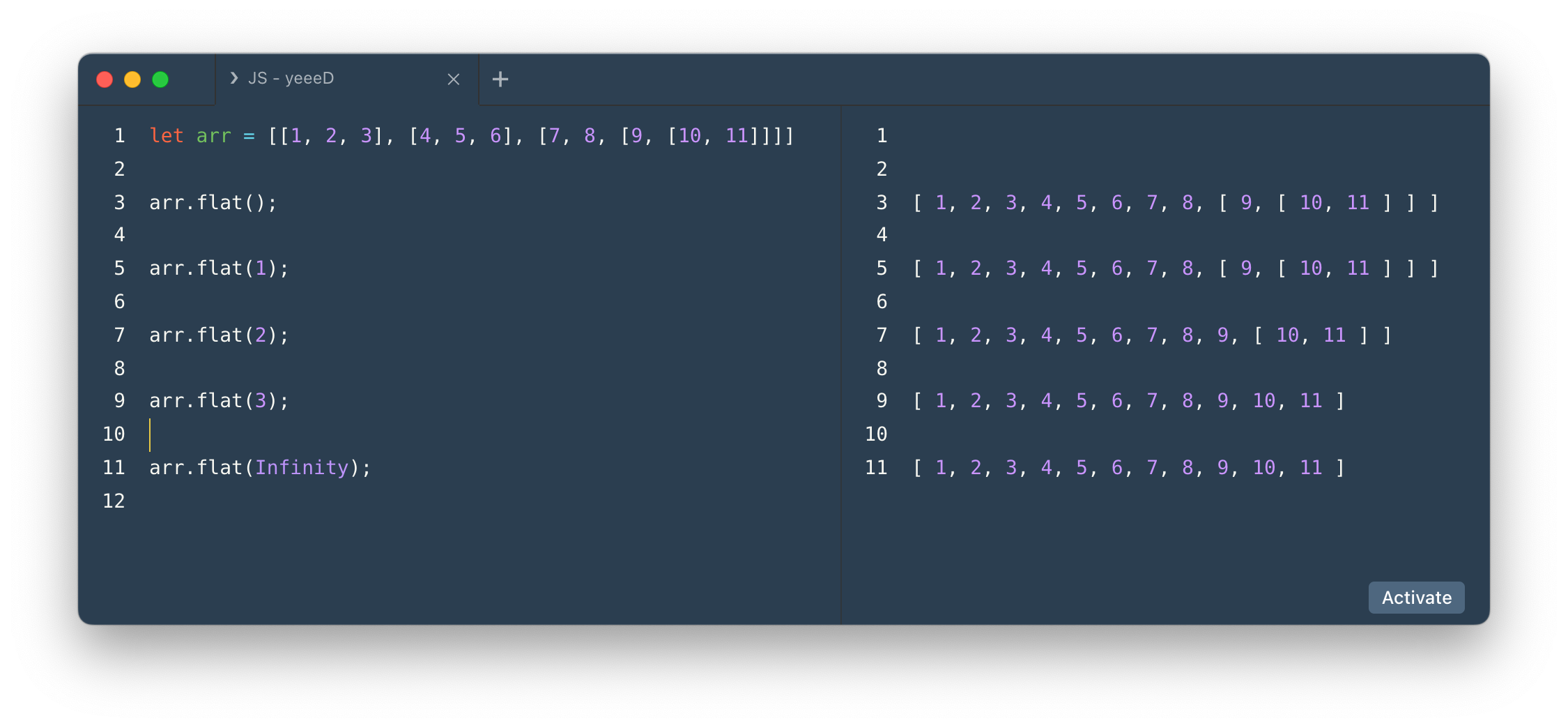 - Infinity를 넣으면 모든 배열을 평탄화해준다