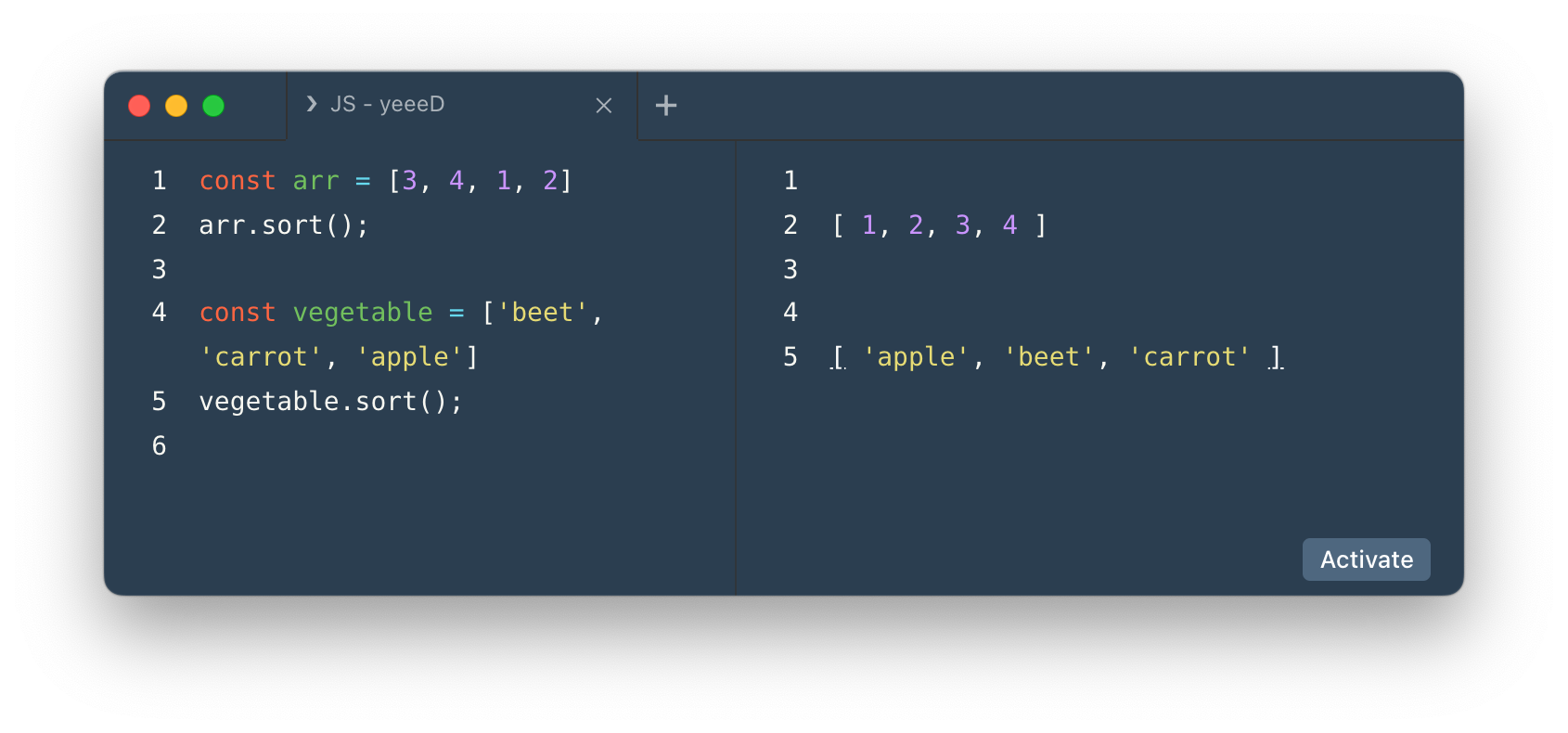 - 이를 사용하면 원본 배열이 재 정렬되므로 원본이 변경된다
