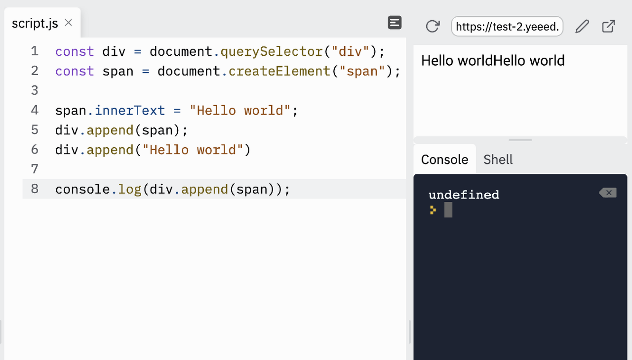 위 예시를 보면 span 노드에 Hello world를 추가했고,