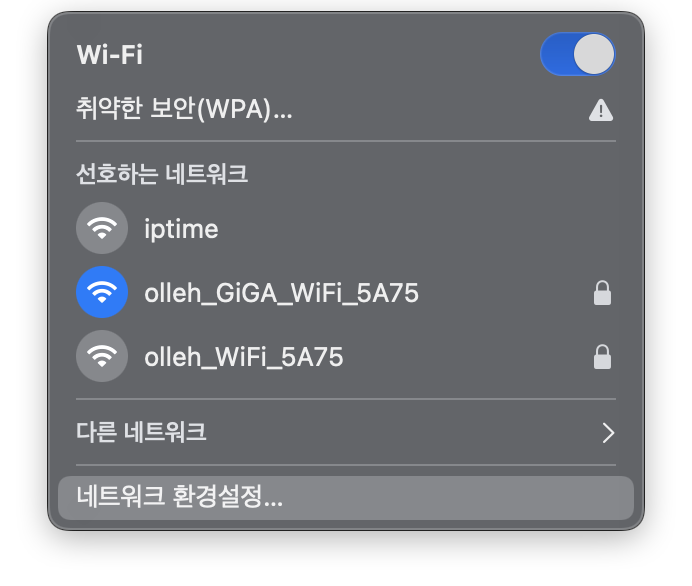 - 네트워크 환경설정 누르기